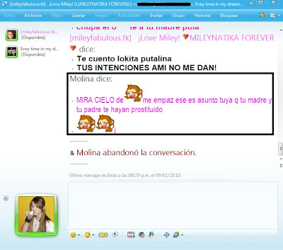 Es que mi prima te agrego al msn y te puso molina no tu nick original vos estas mal parada xq sos mal nacida Jjaja